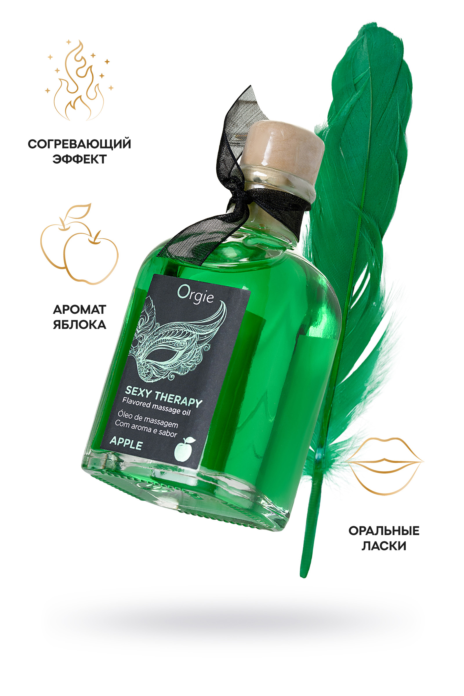 Вкусное съедобное массажное масло с легким согревающим эффектом и умопомрачительным ароматом яблока от Орджи позволит Вас сделать близость невероятно чувственной и яркой. В набор входит перо для возбуждающей сексуальной игры и руководство по технике массажа губами и пером. Масло при контакте с кожей создает приятные тепловой эффект, который способствует возбуждению разогревая и пробуждая чувствительность. Подходит для массажа всего тела и для оральных ласк.Способ применения: нанесите небольшое количество геля на тело для интимной или оральной стимуляции.