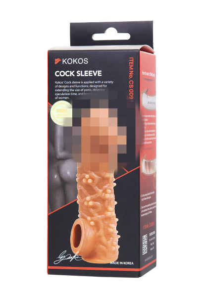 Насадка KOKOS реалистичная с дополнительной стимуляцией, TPE, телесная, 15.6 см с крупными пупырышками