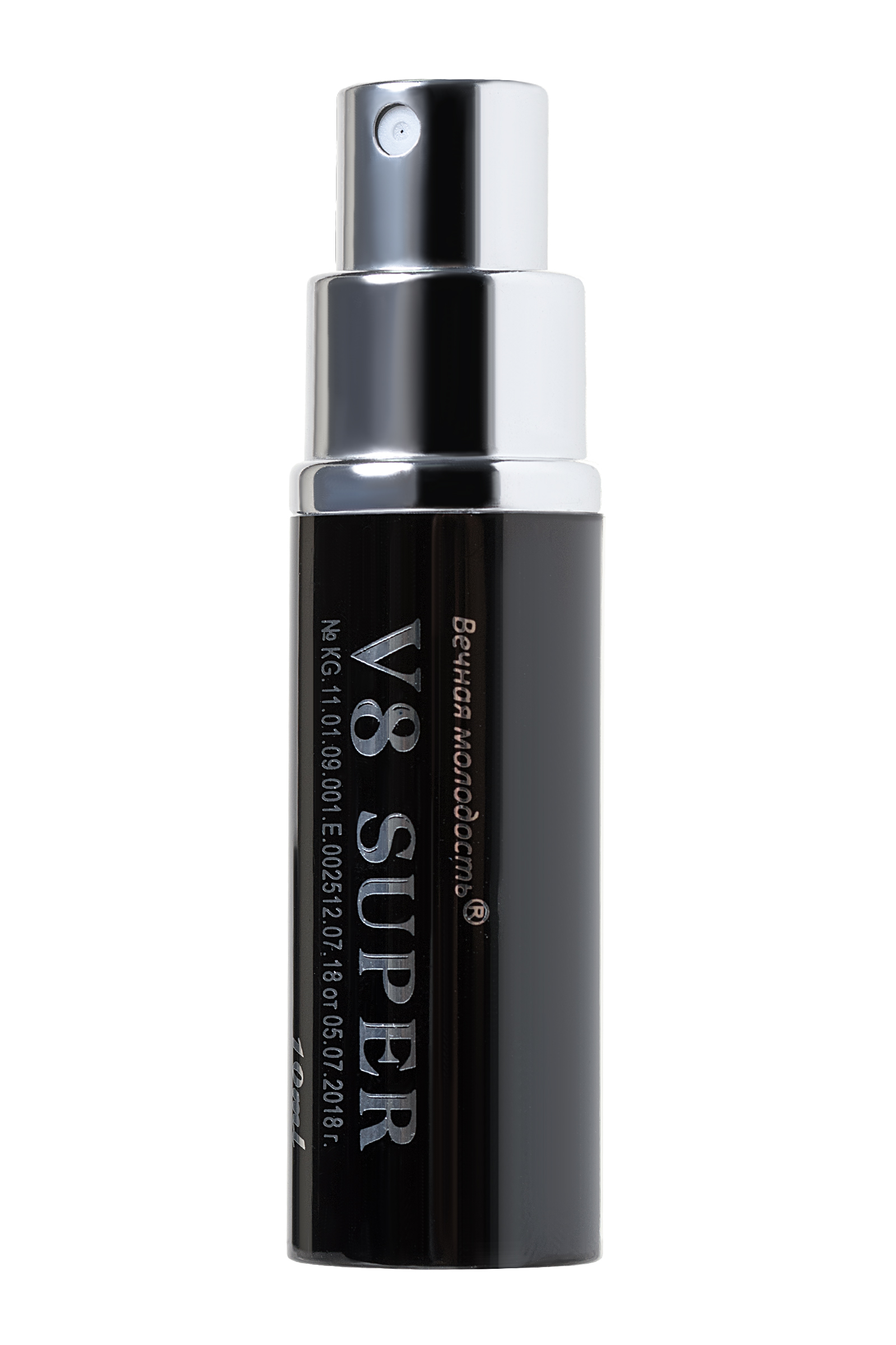 V8 super Придает уверенности и способствует повышению либидо и эректильной функции. Эффективен при: невозможность длительного полового акта, невозможность проведения нескольких сексуальных актов, большие физические нагрузки и стресс, депрессивное состояние, слабая чувствительность полового органа и блеклые оргазмы, Способ применения и дозы: 3-4 нажатиями на клапан нанести спрей на кожу полового члена, распределить по поверхности органа легкими массажными движениями. Спрей быстро впитывается в кожу, не оставляет жирный слой, оказывает увлажняющее, питательное, антисептическое действие. Состоит из органически безопасных компонентов, Не содержит вредных химических добавок, Не сушит кожу и не вызывает на ней раздражения, может использоваться в течение длительного времени, подходит пациентам пожилого возраста (до 70 лет),