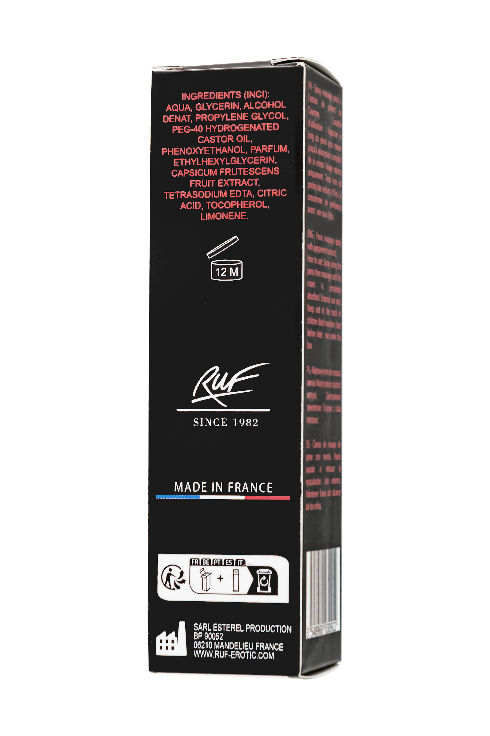 РУФ Maxi Erect 907 — это стимулирующий спрей для мужчин, разработанный для повышения чувствительности и усиления эрекции. Состав на основе натуральных компонентов, таких как кайенский перец чили и белый тимьян, делает его мощным средством для достижения мгновенной и продолжительной эрекции. Эти афродизиаки стимулируют кровообращение в интимной зоне, обеспечивая усиленный приток крови и продолжительное удовольствие. Maxi Erect 907 идеально подходит для мужчин, испытывающих трудности с поддержанием эрекции или тех, кто хочет усилить свою сексуальную активность. Если вы ищете решение для усиления сексуальной выносливости и повышения уверенности в интимной жизни, этот спрей станет вашим незаменимым помощником. Кайенский перец обеспечивает согревающий эффект, усиливая приток крови, а белый тимьян стимулирует эрекцию, создавая максимальные условия для продолжительного полового акта. Удобный атомизатор объемом 25 мл позволяет легко дозировать средство. Рекомендации по применению: нанесите небольшое количество спрея на пенис и слегка помассируйте для лучшего впитывания. Эффект наступает через несколько минут. Объем: туба 25 мл Производство: Франция
